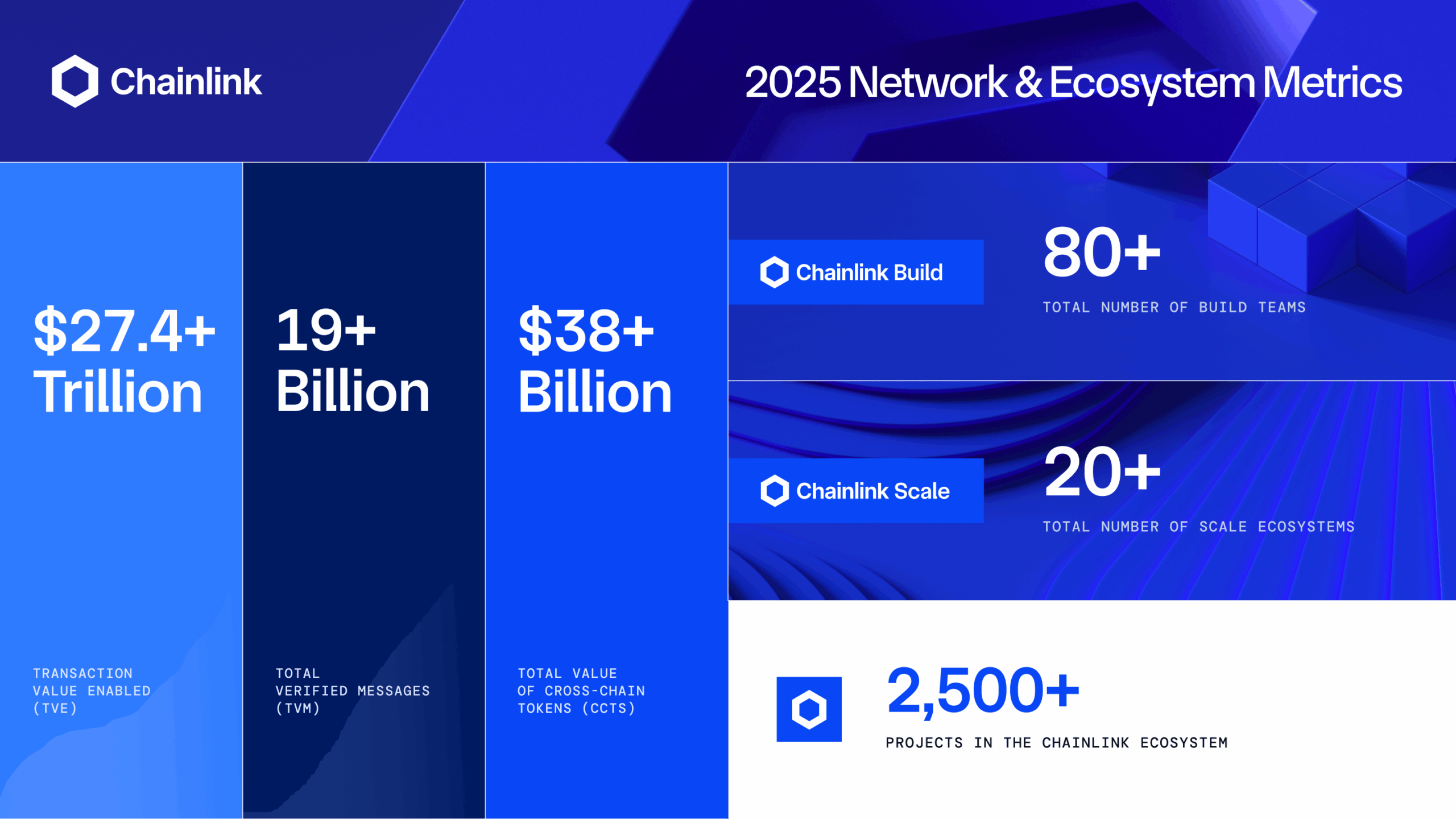 - Solana support was added to CCIP, the first non-EVM chain to feature CCIP’s v1.6 upgrade. The integration unlocked access to $19B+ of assets through projects leveraging the CCT standard, such as ElizaOS, The Graph, Maple Finance, Pepe, Zeus Network, and more.